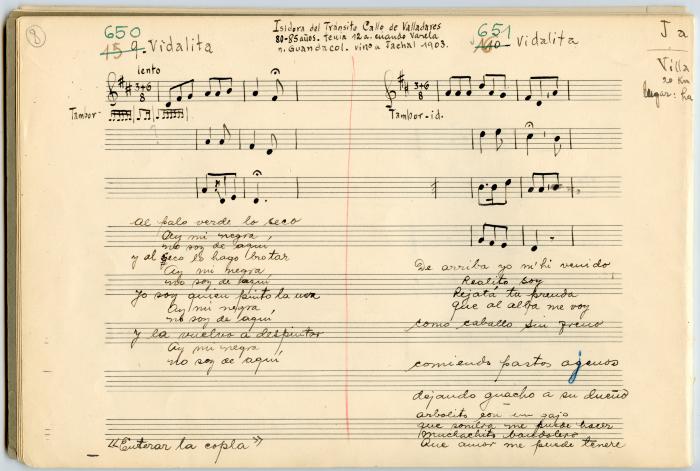 | Notes: | La transcripción musical contiene la letra del registro sonoro. El cuaderno de pautación dice: "«Enterar la copla»" |