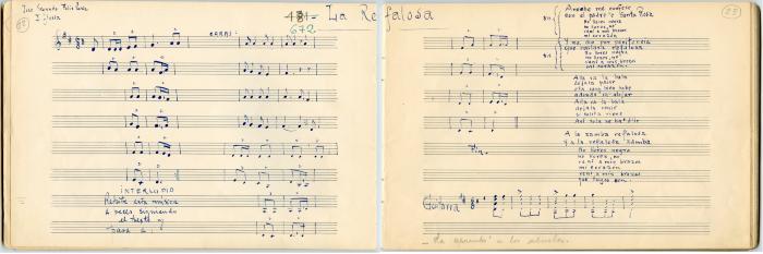 | Notas: | En el cuaderno de transcripción dice: "Interludio: repite esta música, a veces siguiendo el texto" y "La aprendió a los abuelos". La transcripción musical contiene la letra del registro sonoro y los acordes de la guitarra. |