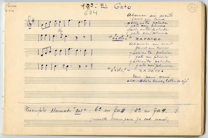 | Notas: | En el cuaderno de pautaciones dice: "Tiemple llamado: 6° en fa# / 3° en fa#. [resulta bueno para fa sost. menor.] La transcripción musical contiene la letra del registro sonoro. |